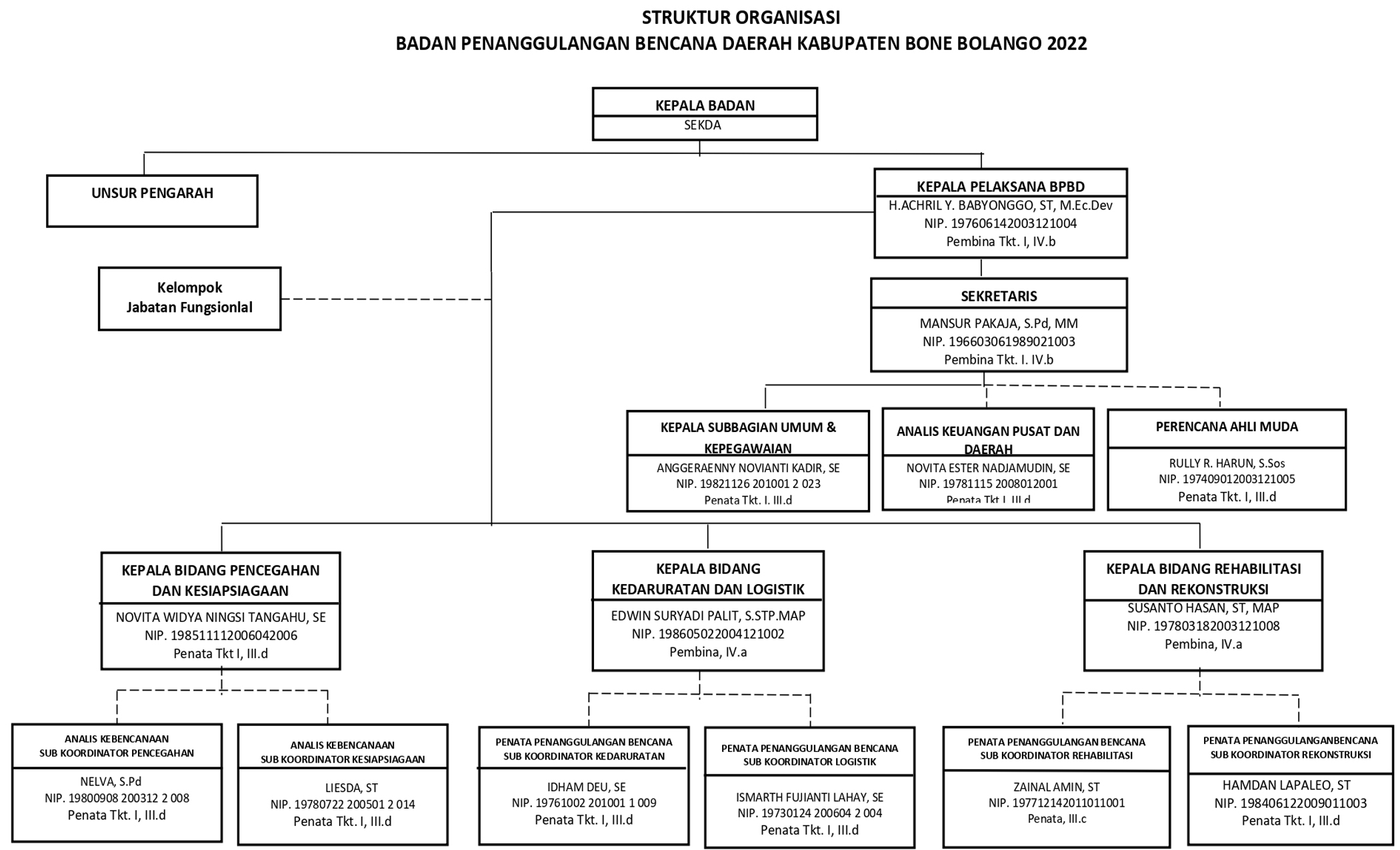Susunan Organisasi Badan Penanggulangan Bencana Daerah Kabupaten Bone Bolango terdiri atas :